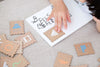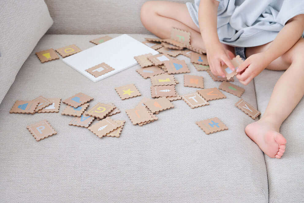 以傳統郵票地模樣設計成木頭字母小卡,包含英文子母大小寫,在每個字母背後也有相關的圖形加深孩子記憶。每個字母皆以兩張為一組,也能當做閃卡翻翻卡配對使用!附上小郵差們能隨身攜帶卡片的小小郵差包!