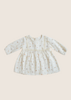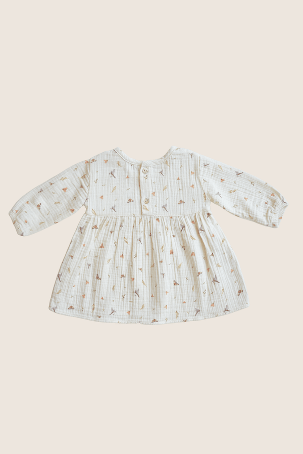 100% 穆斯林棉奶油色連衣裙,飾有氣質可愛的青鳥蝴蝶小葉子印花。