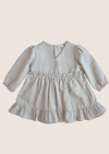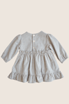 柔軟的氣質百搭條紋連衣裙,腰部及裙擺飾有荷葉邊細節,背面飾有珍珠母鈕扣。