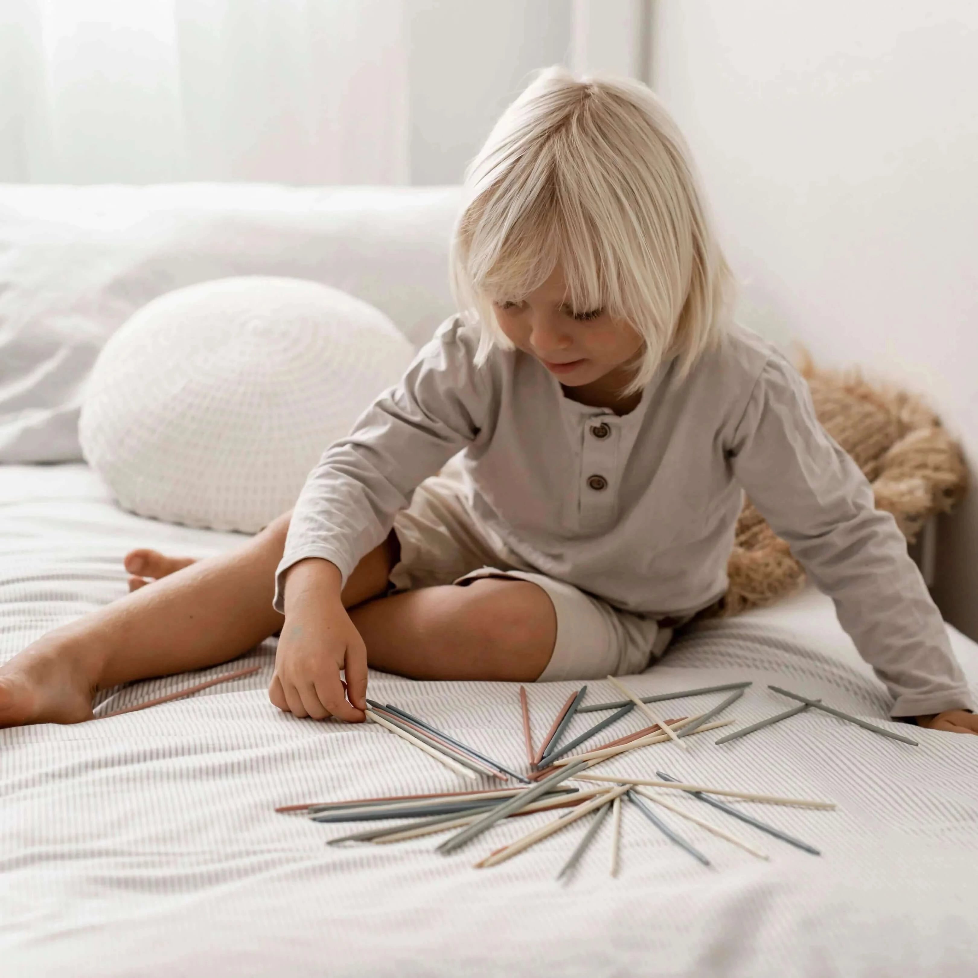 雖然這些Pick Up Sticks很有趣且具有互動性,但它們也促進了存在的藝術、精細運動技能和注意力。 您和您的孩子都會沉迷於這款遊戲,以您從未想像過的全新和充滿愛的方式將你們聚集在一起。 與您的孩子分享這種平靜而專注的體驗,讓您自己童年的快樂重獲新生。